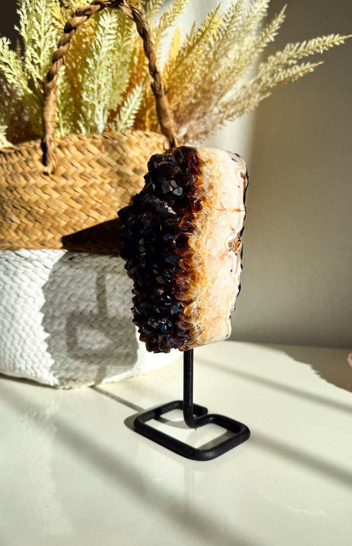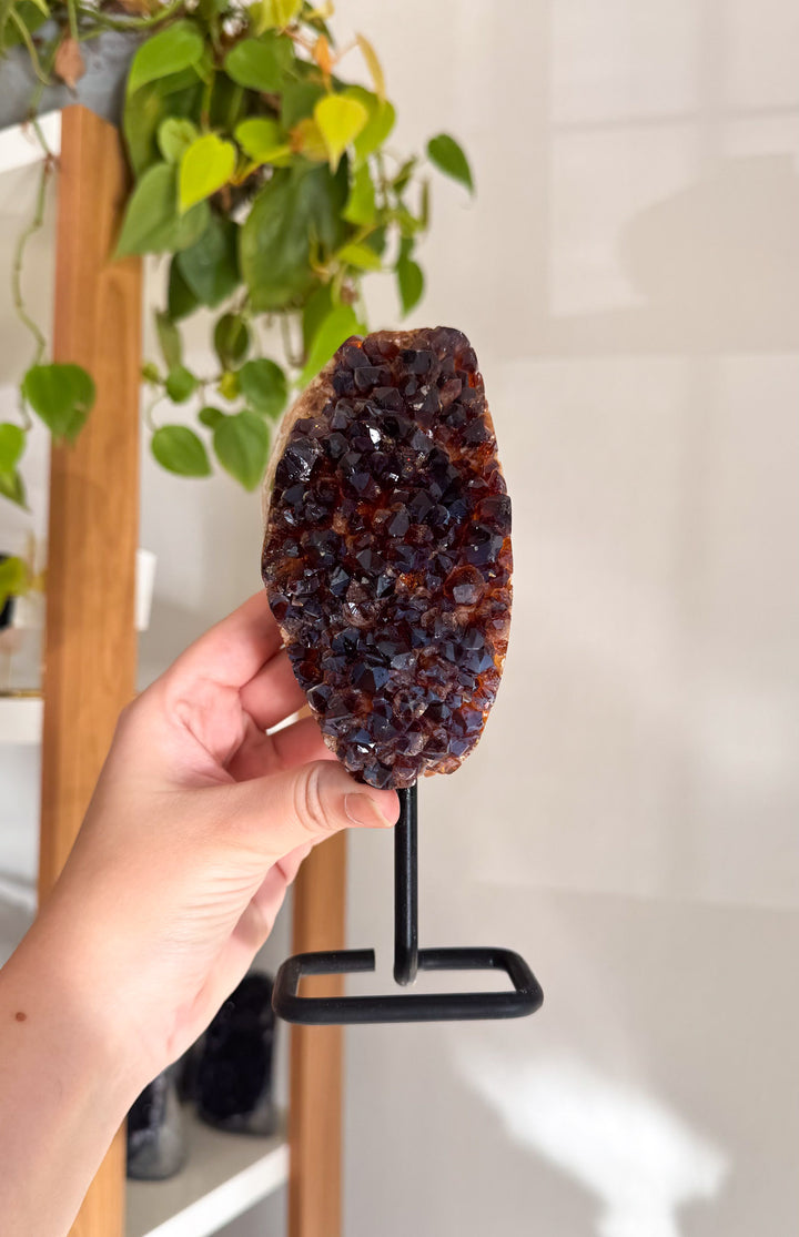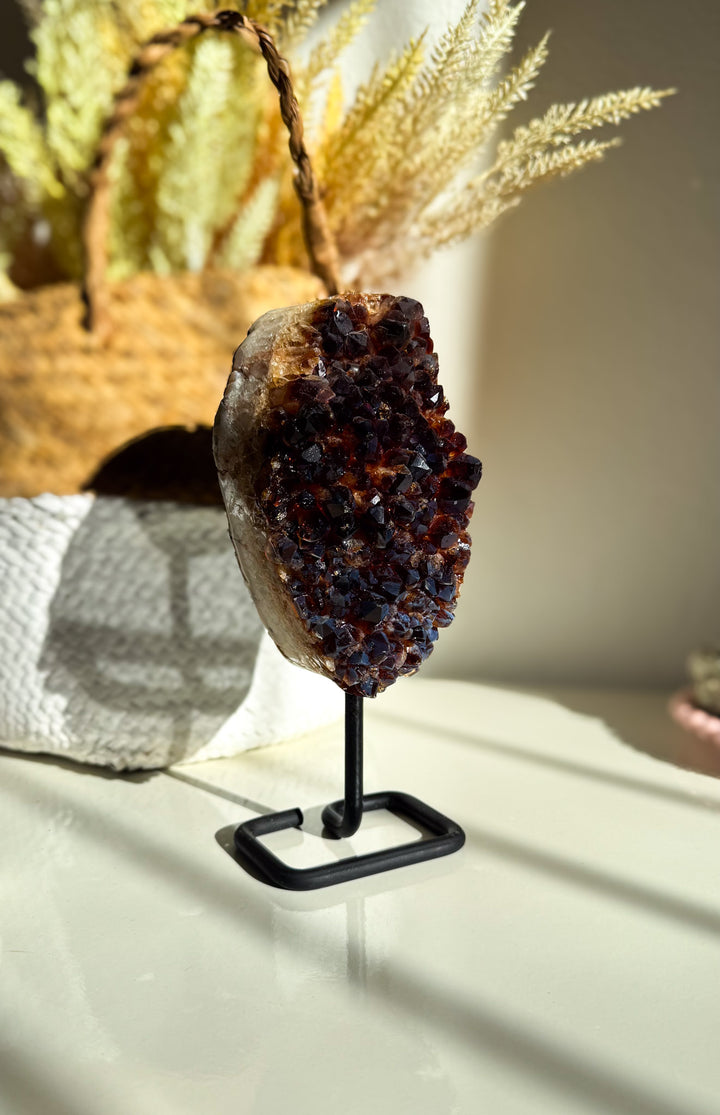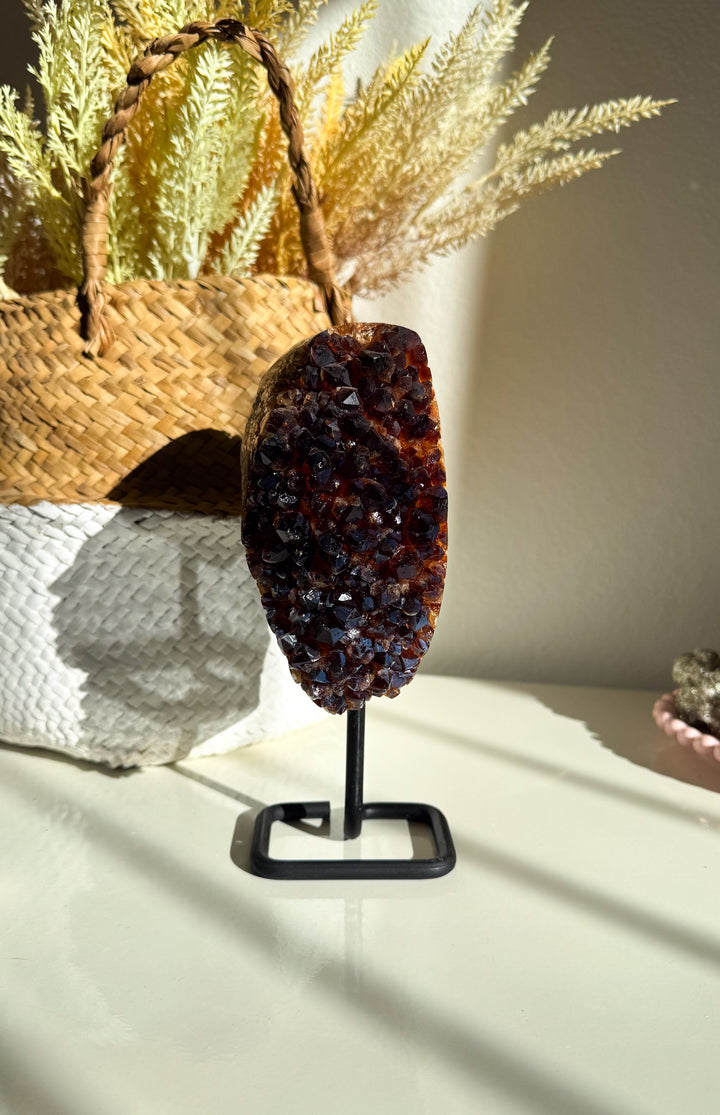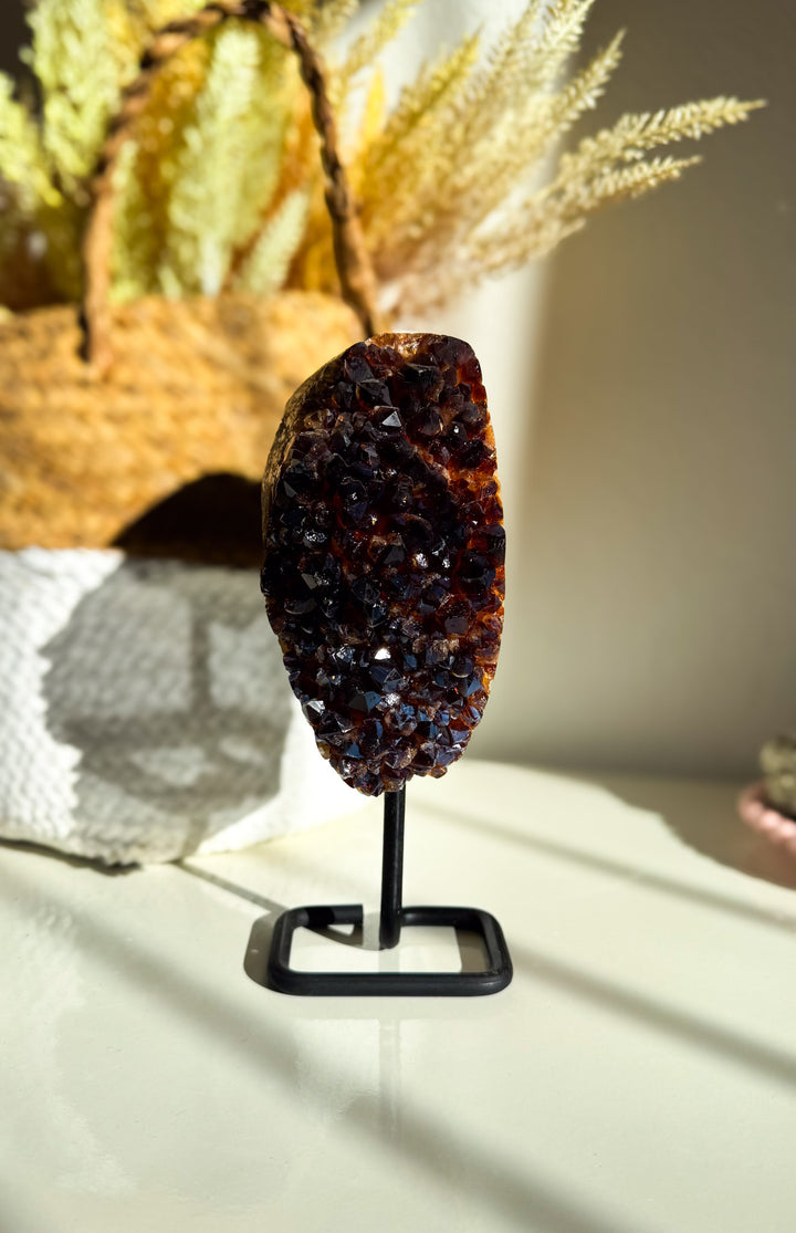 Este Citrino passou pelo processo de aquecimento da Ametista, potencializando sua cor.