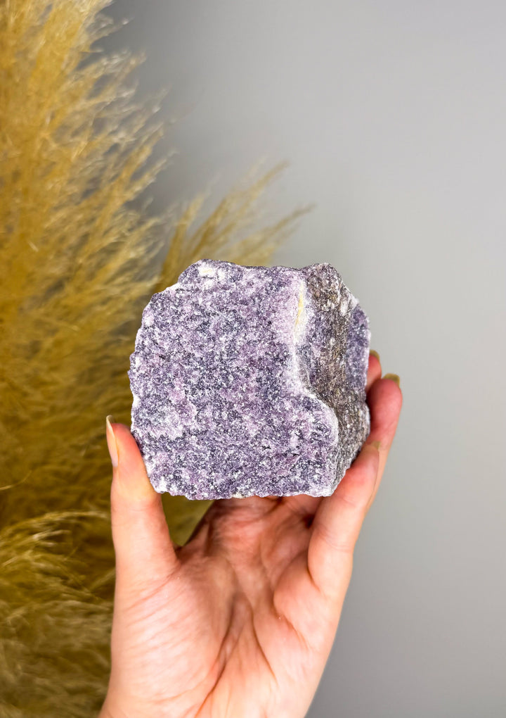 Com seus tons lilás suaves e reflexos cintilantes, a lepidolita é uma pedra profundamente ligada à calma, ao equilíbrio e à transformação interior. Conhecida como uma das pedras da transmutação, ela ajuda a liberar padrões antigos, aliviar ansiedades e trazer clareza mental diante das mudanças da vida.