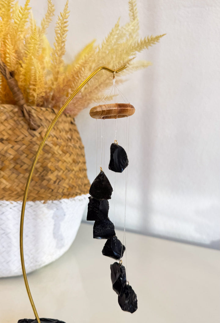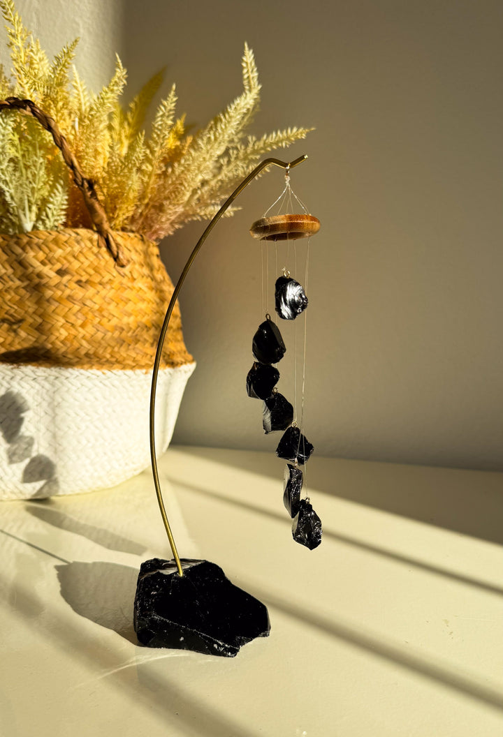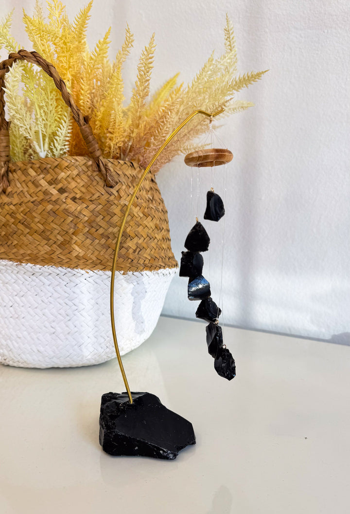 O Móbile de Obsidiana Negra traz uma energia poderosa para seu ambiente, ajudando a proteger contra energias negativas e promover equilíbrio emocional. Compacto e elegante, é ideal para mesas, oferecendo proteção constante e harmonia onde você estiver. Uma peça que une beleza e funcionalidade para transformar seu espaço com a força da Obsidiana Negra.