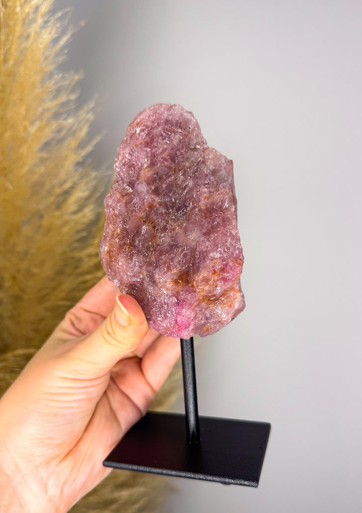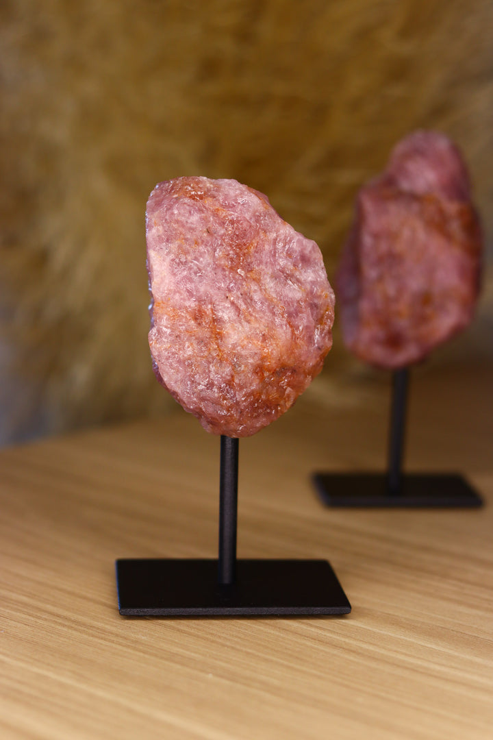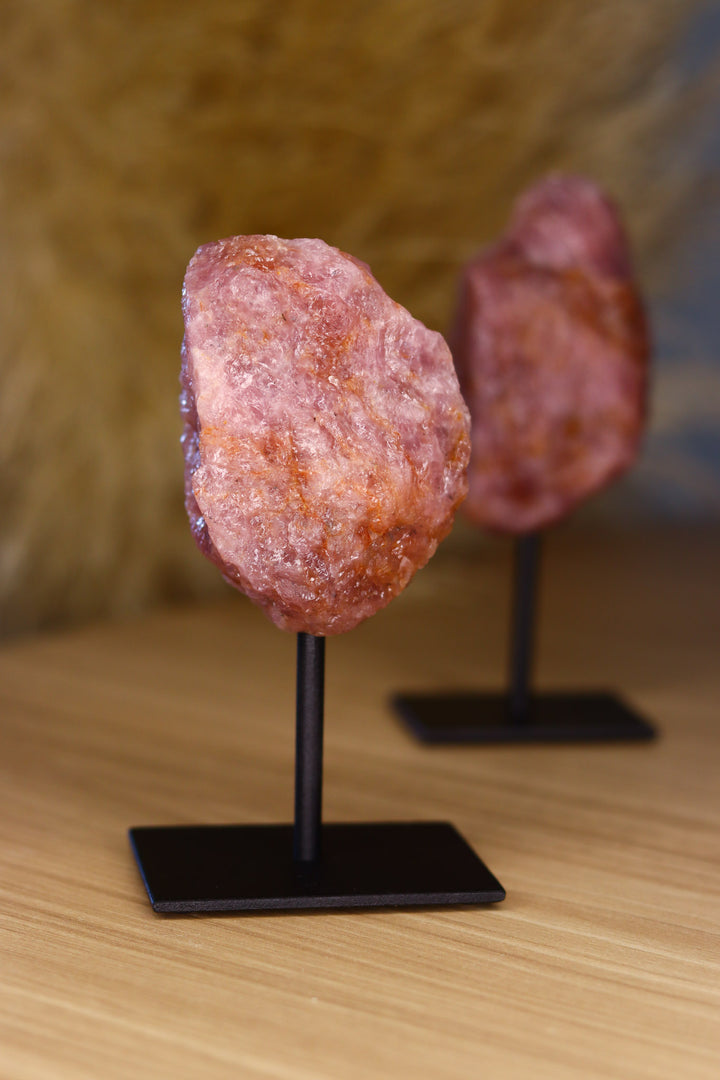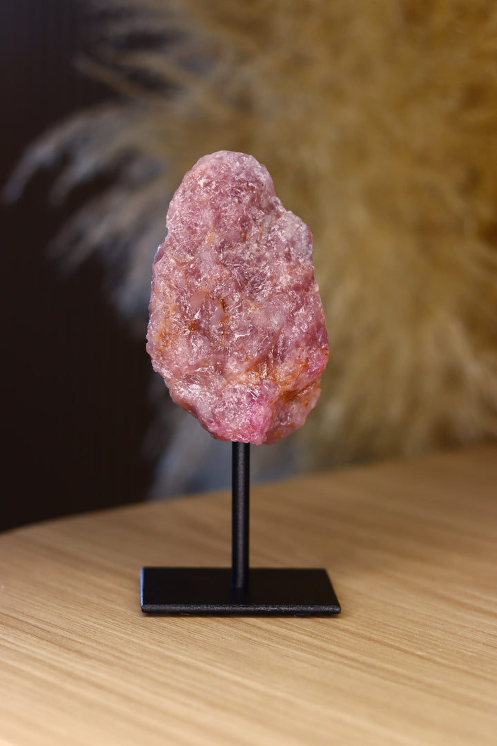 Quartzo Morganito bruto na base