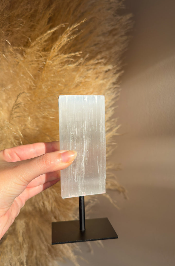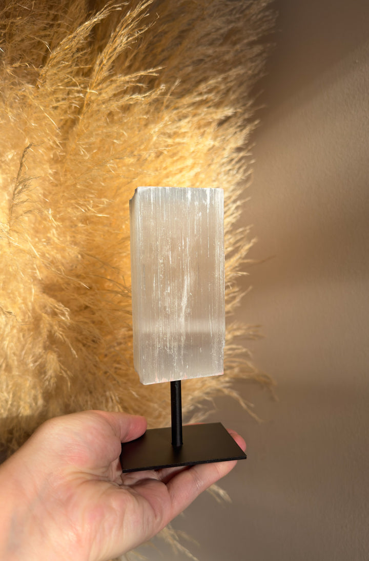 Sendo a selenita uma forma cristalizada de gipsita é imensamente mais poderosa. É formado pela evaporação da água salgada em lagos ou mares interiores. Estar intimamente ligado à água é perfeito para trabalhar com o corpo emocional. As funções principais da Selenita são a limpeza e energização de outros cristais, a meditação, o desenvolvimento da telepatia e a clareza mental.