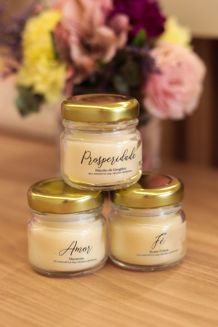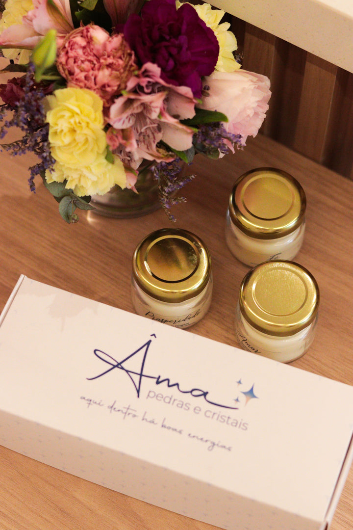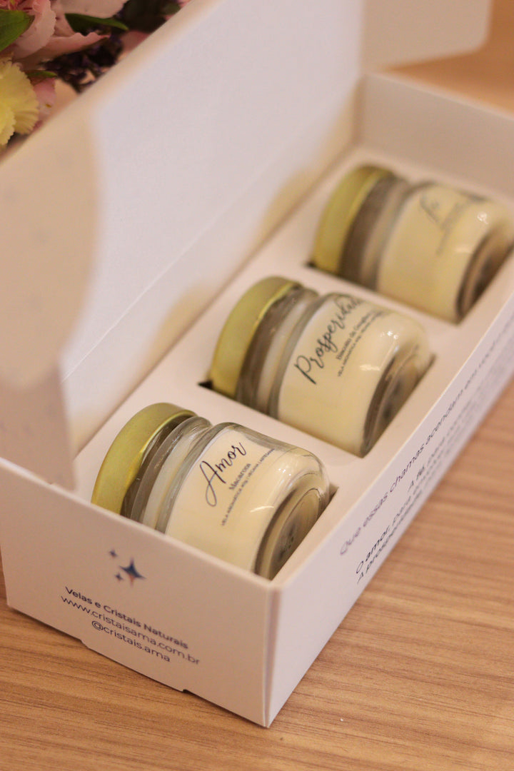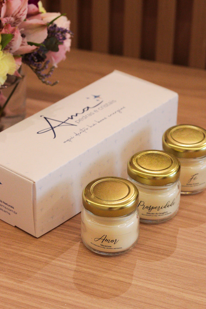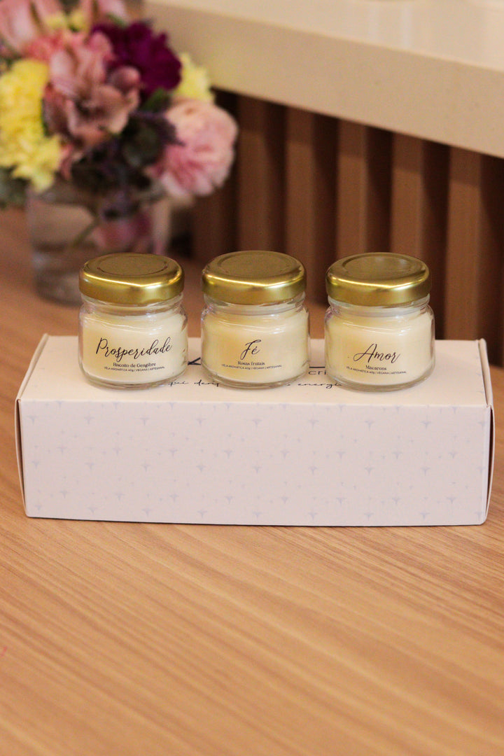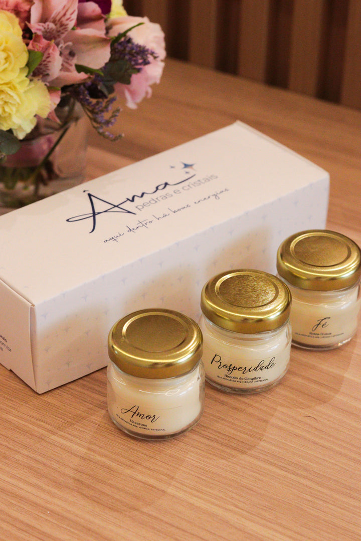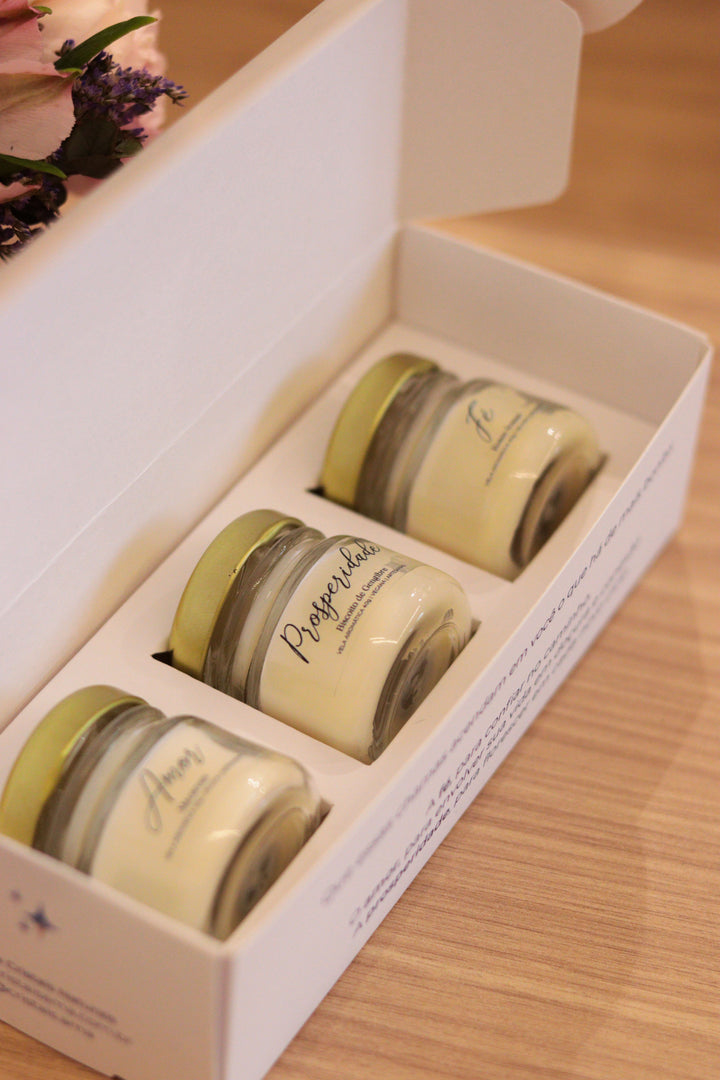Trio de Velas Presenteáveis | Amor, Fé e Prosperidade